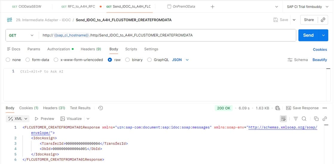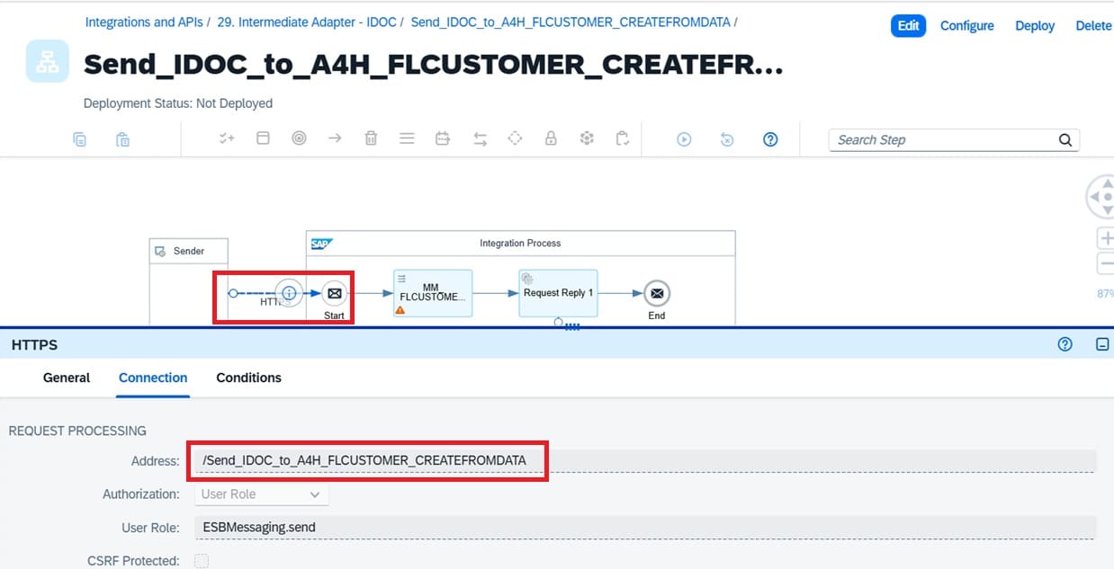 | Sender http path | /Send_IDOC_to_A4H_FLCUSTOMER_CREATEFROMDATA |