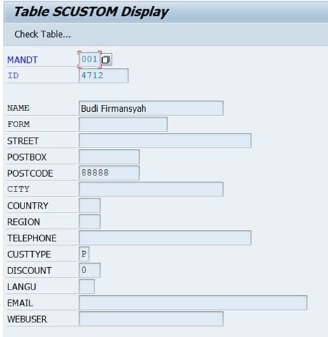 Verify record added using tocde SE16 and table SCUSTOM