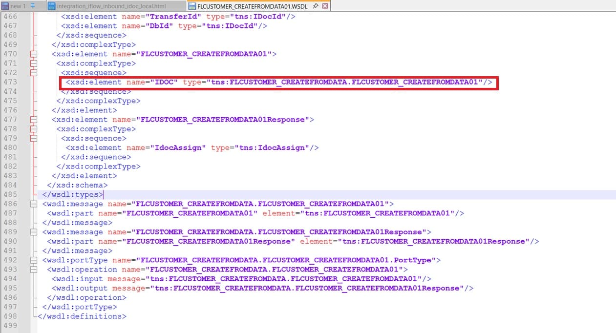 <xsd:element name="IDOC" type="tns:FLCUSTOMER_CREATEFROMDATA.FLCUSTOMER_CREATEFROMDATA01"/>