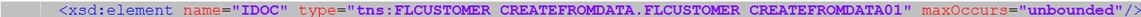 <xsd:element name="IDOC" type="tns:FLCUSTOMER_CREATEFROMDATA.FLCUSTOMER_CREATEFROMDATA01" maxOccurs="unbounded"/>