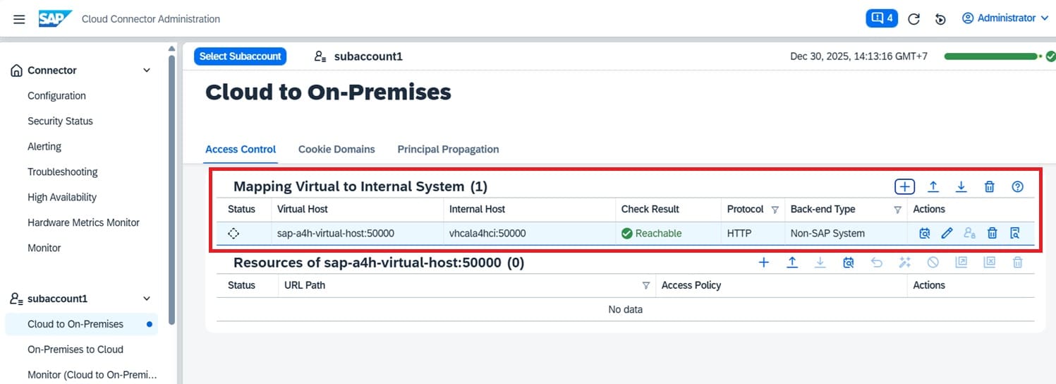 Mapping a virtual system to an internal system using the HTTP protocol for a non-SAP system is required for this end-to-end integration architecture. This document assumes that the corresponding virtual-to-internal system mapping has already been configured in SAP Cloud Connector. If this configuration has not yet been completed, please refer to the following link for guidance.