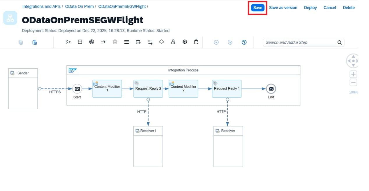 At this stage, the iFlow development is complete. The next step is to configure the SAP Cloud Connector installed on the back-end system.