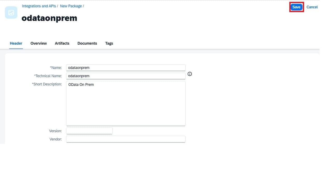 Press Save button and the a new iFlow package created.