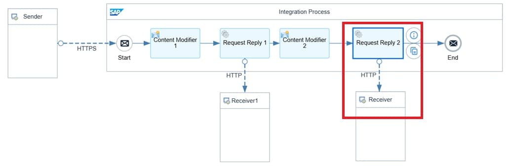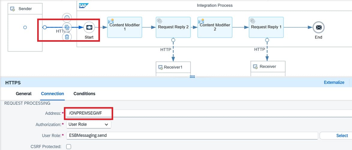 Request Reply 1 is used to call the backend S/4 HANA API for retrieving the X-CSRF-Token.