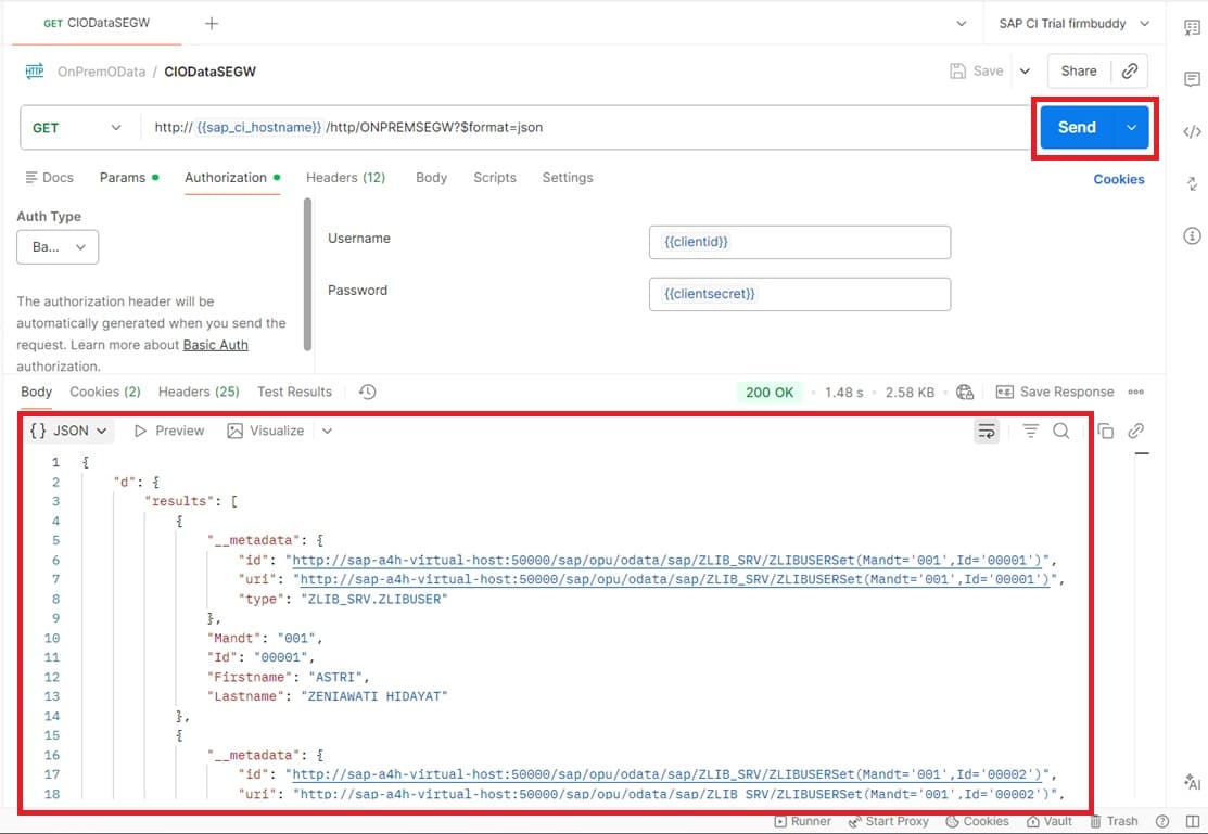 At this stage, all the developments and settings are completed. It's time to test the iFlow with Postman. Testing this iFlow is quite straight forward. On authorization tab, please maintain user name and password with clientid and clientsecret of SAP Process Integration Runtime key.