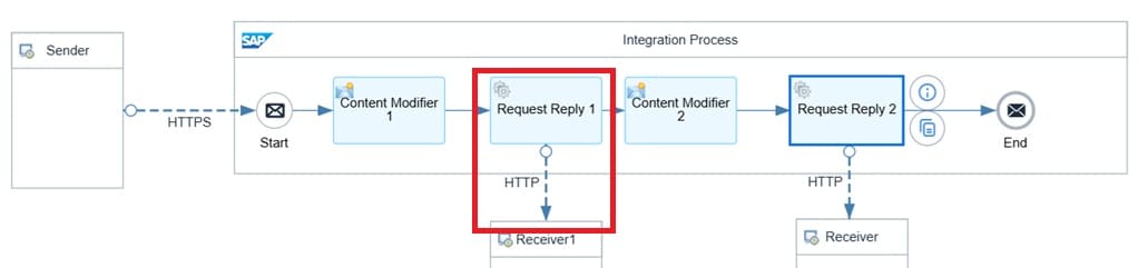 The purpose of Content Modifier 1 and Request Reply 1 is to retrieve the X-CSRF-Token from the backend, which will be used later for the actual API call in Request Reply 2.
