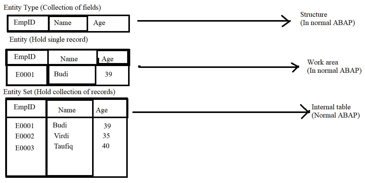 Entity Set : is an option to hold collection of records. ENTITYSET is similar to INTERNAL TABLE in normal ABAP.